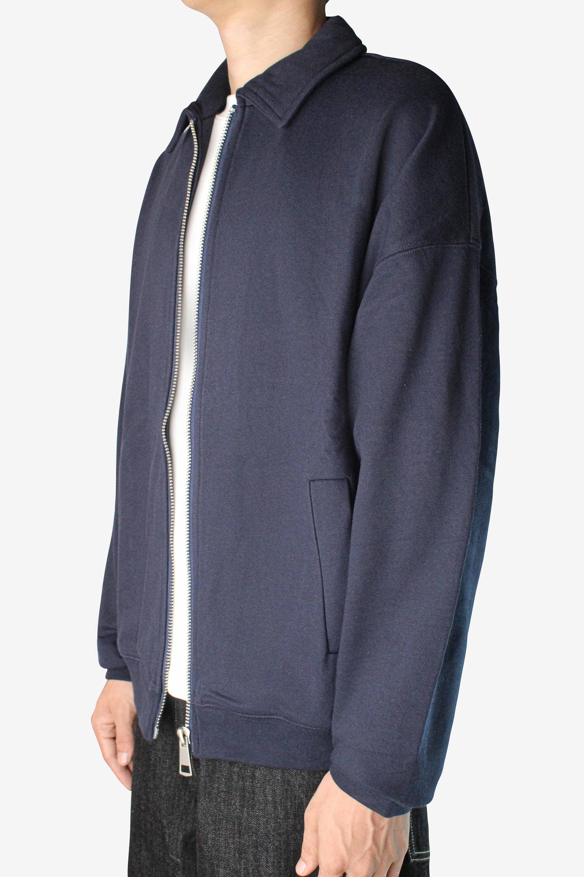Hoodie reimagined with a soft collar. Casual yet elevated look.Â
